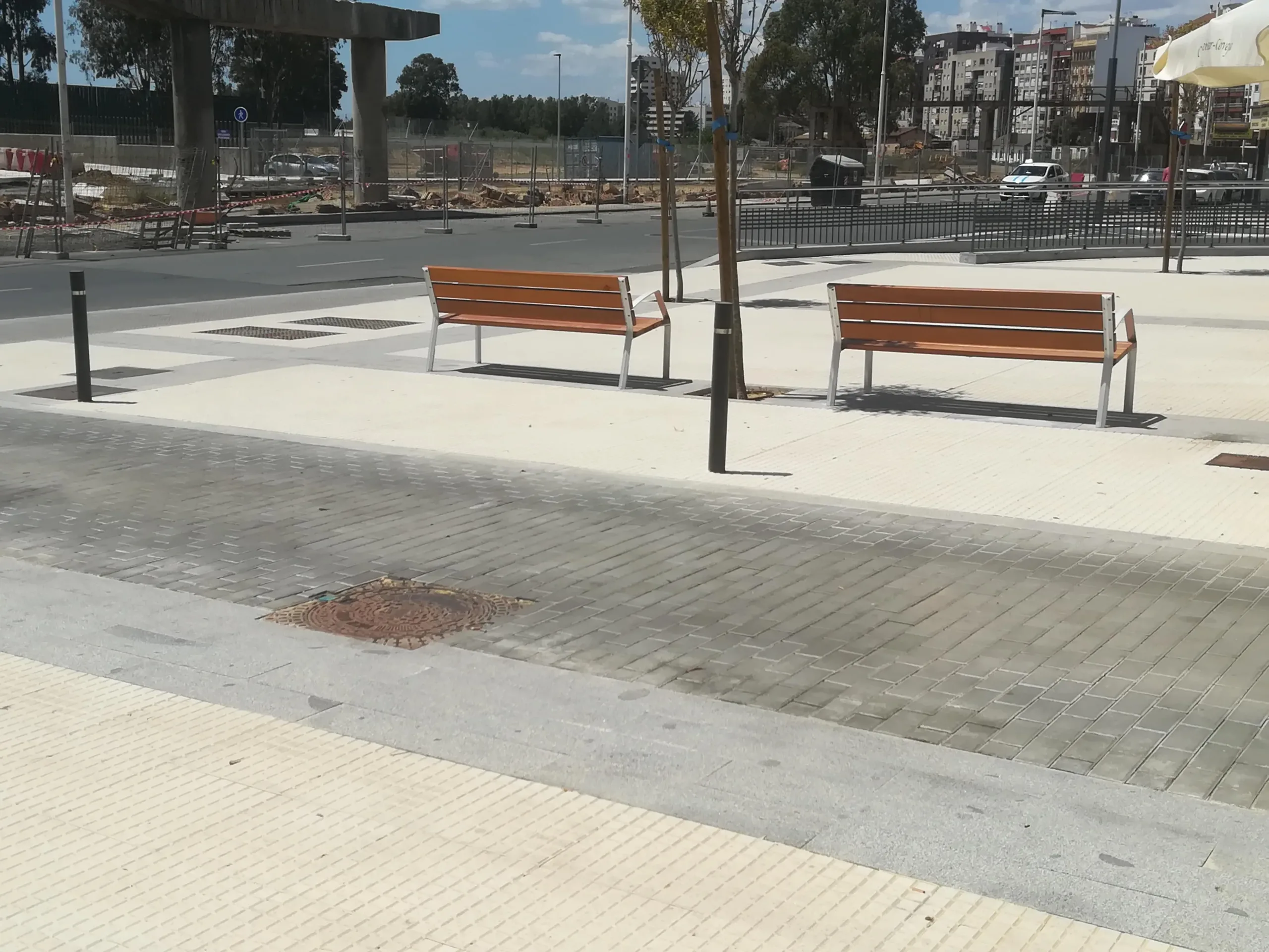 Installation of urban furniture in the accesses of the new ADIF station in Huelva, Spain and manhole iron covers for all the services of the same.